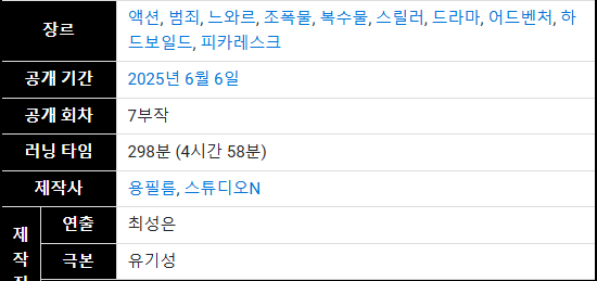 | 남기준 | 조직 복귀자, 복수자 | 동생 죽음의 진실 추적 |